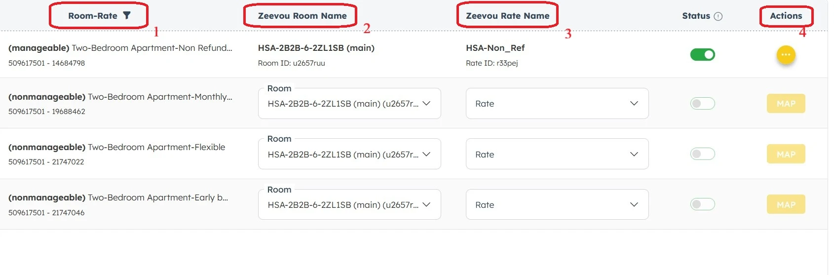 Actions - Click on MAP and It will ask to set up Mapping configuration for a specific rate plan.