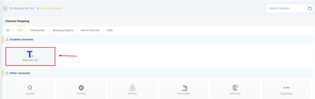 9. Click on INACTIVE to Active the channel. Alternatively, go to ‘Channel Mapping’ > click on Trip.com V2.