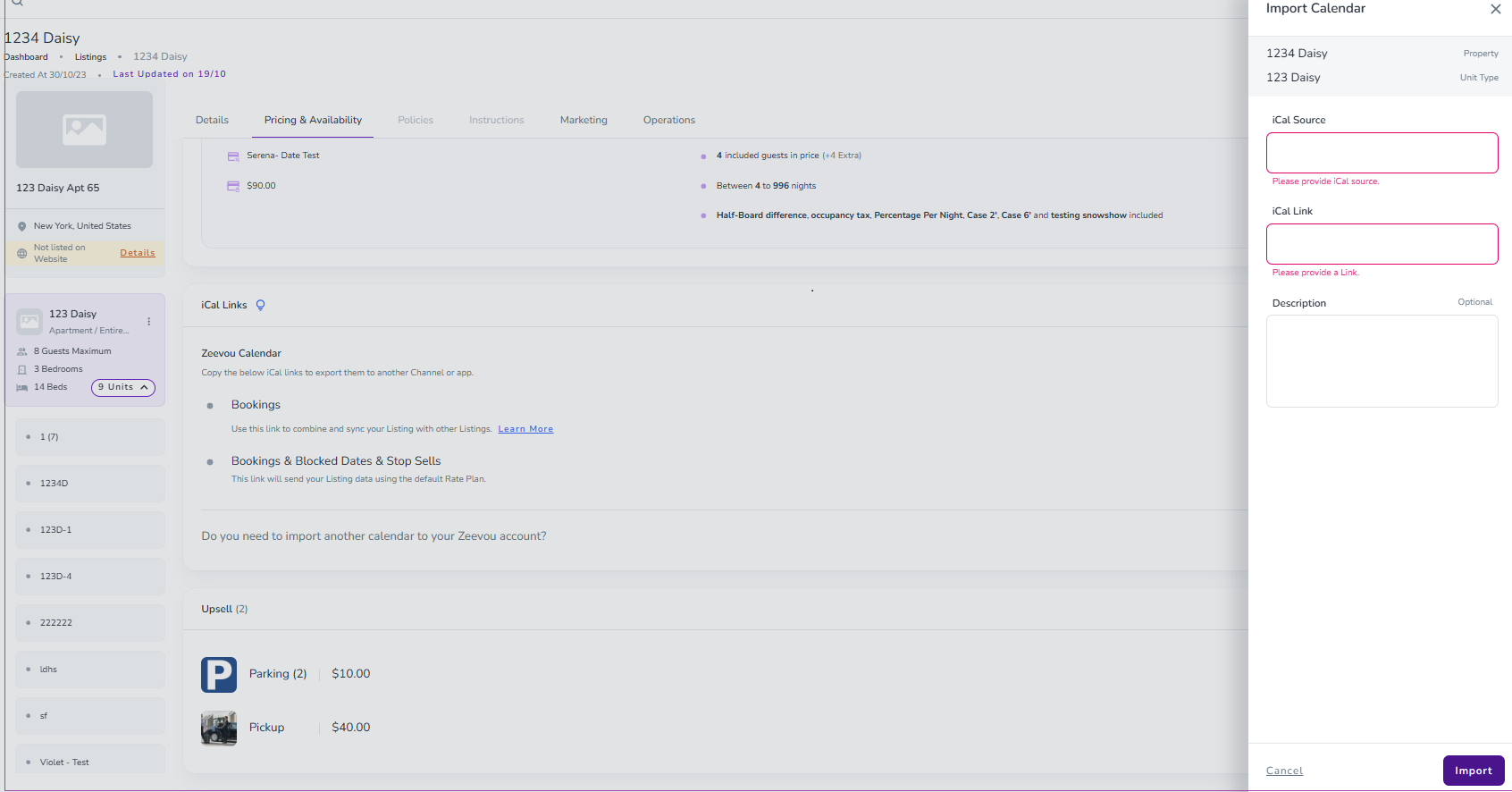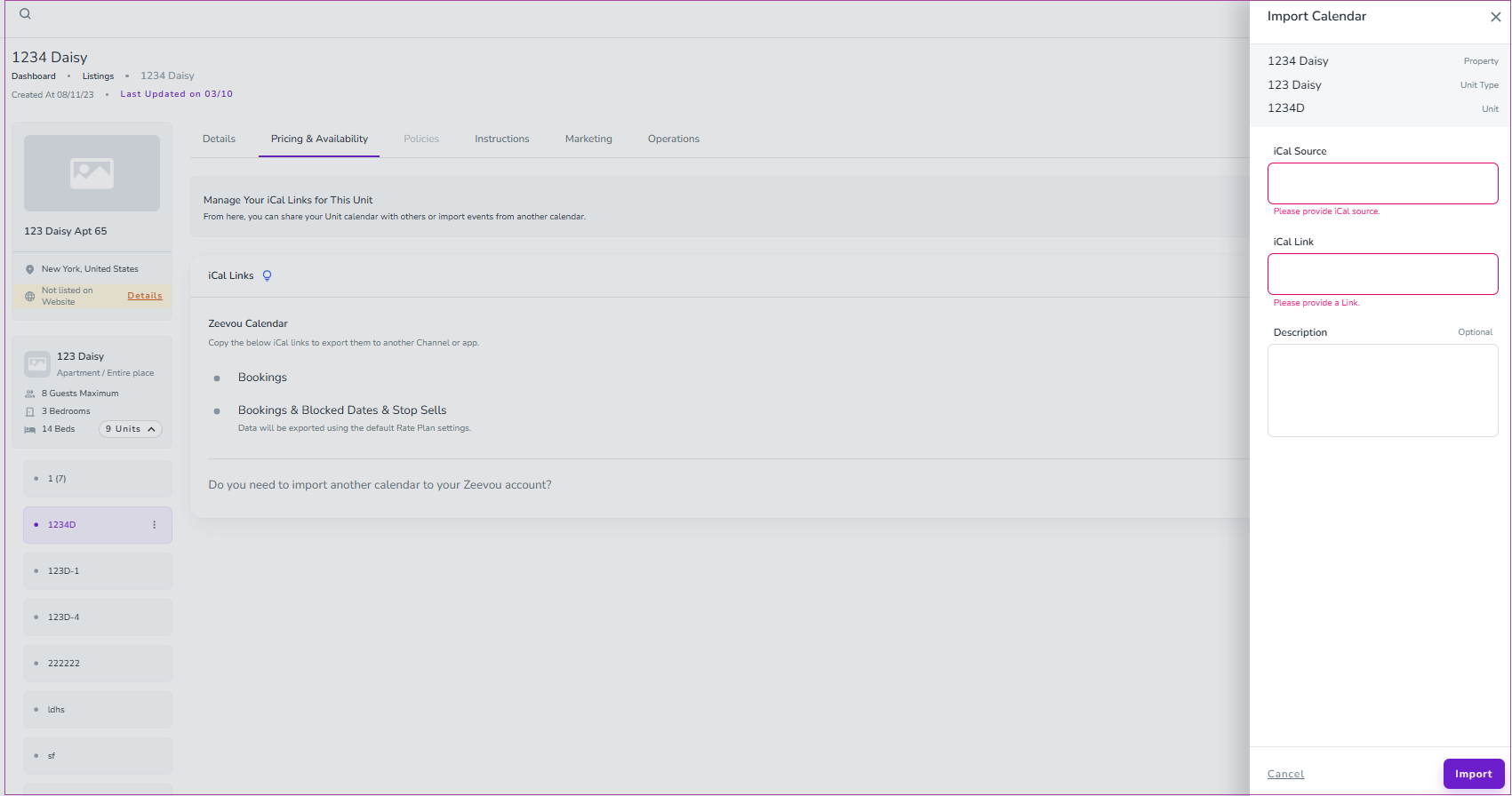 If you have an iCal link from a third party platform and need to reduce your availability at Zeevou, you can import an iCal link for either a Unit Type or Unit.