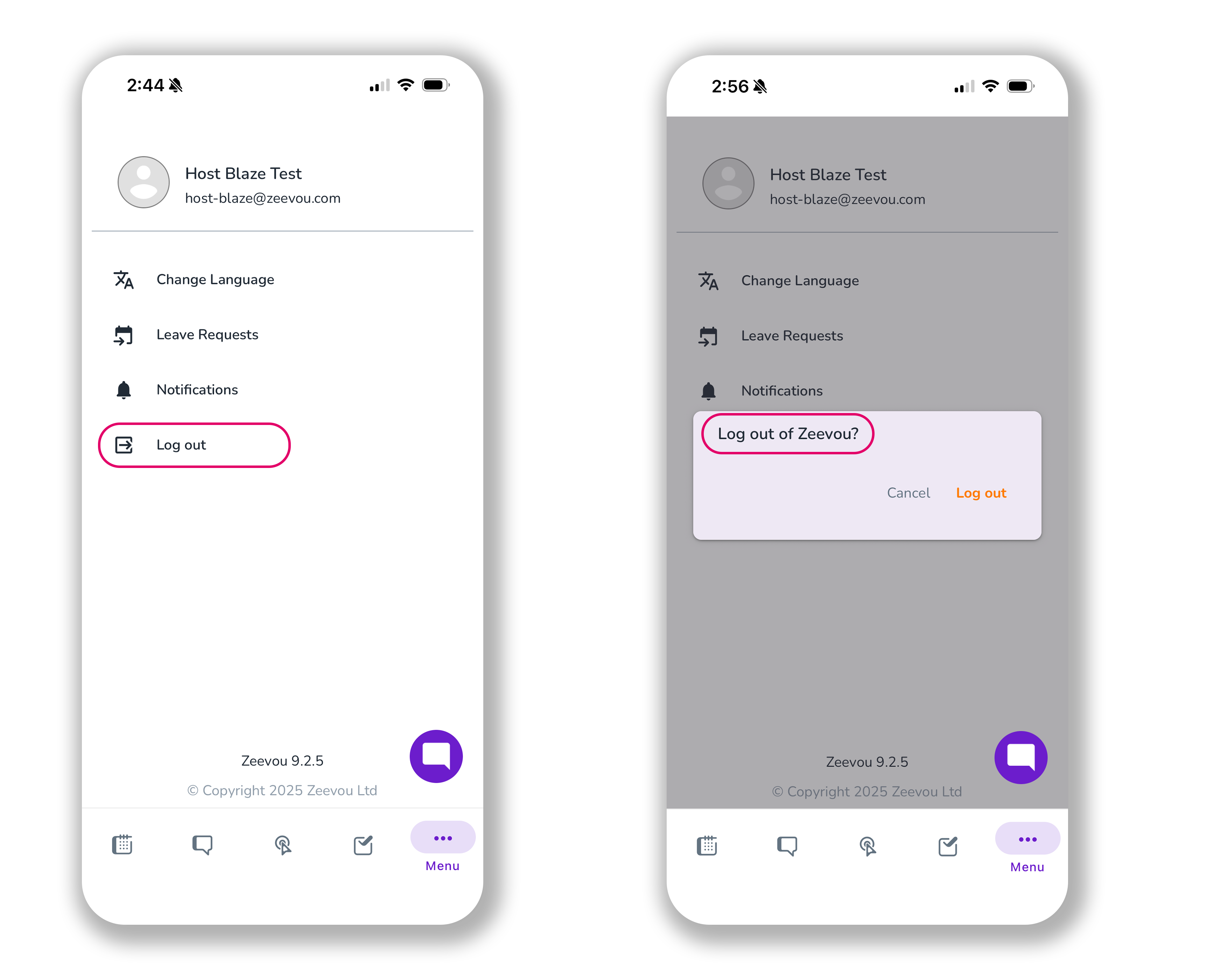 When you want to exit the Zeevou App, click on Log out.