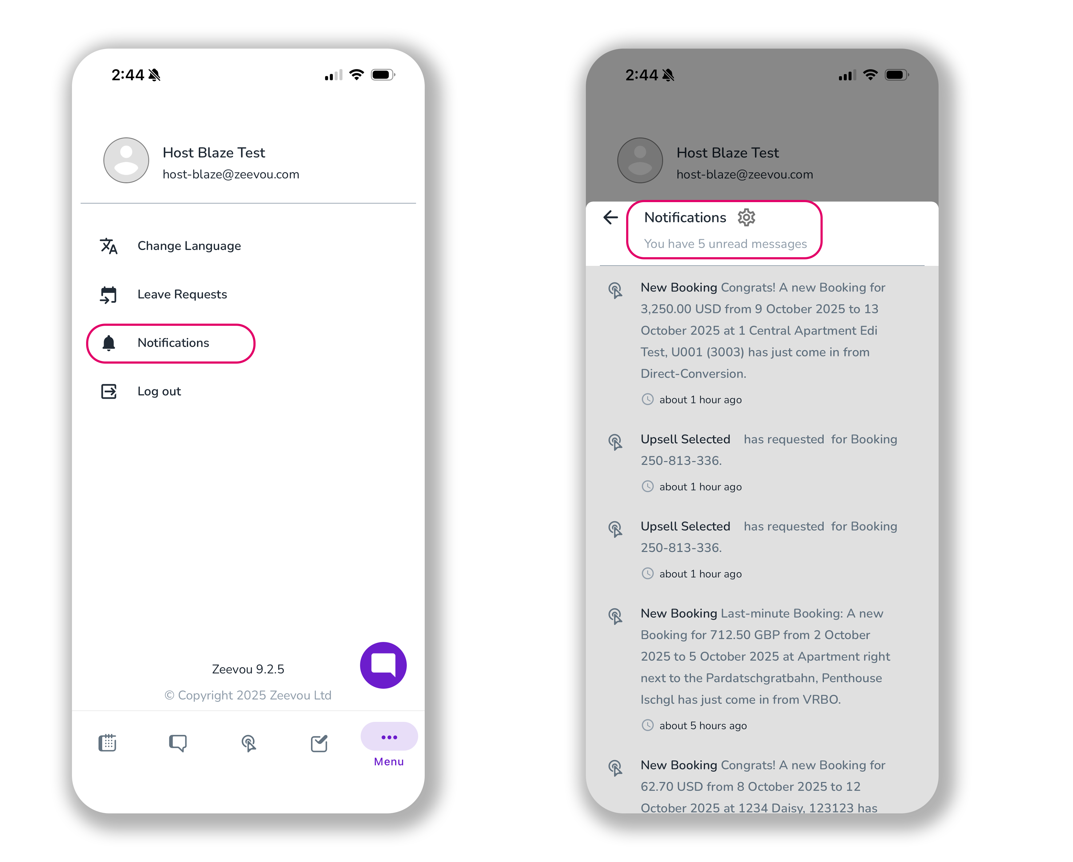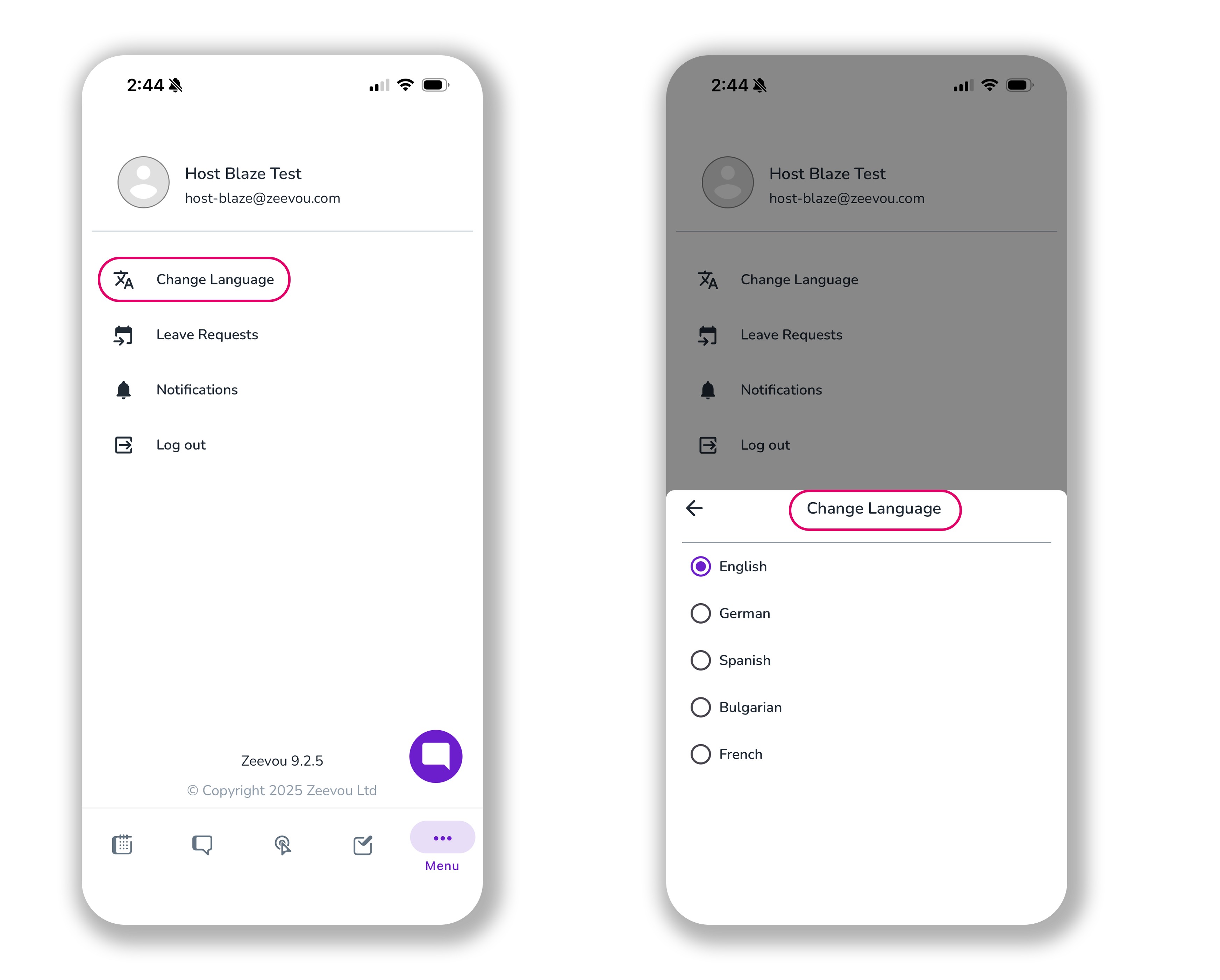 When you’re logged into your Zeevou App, you can click on the three dots to open the Menu bar which includes four sections: