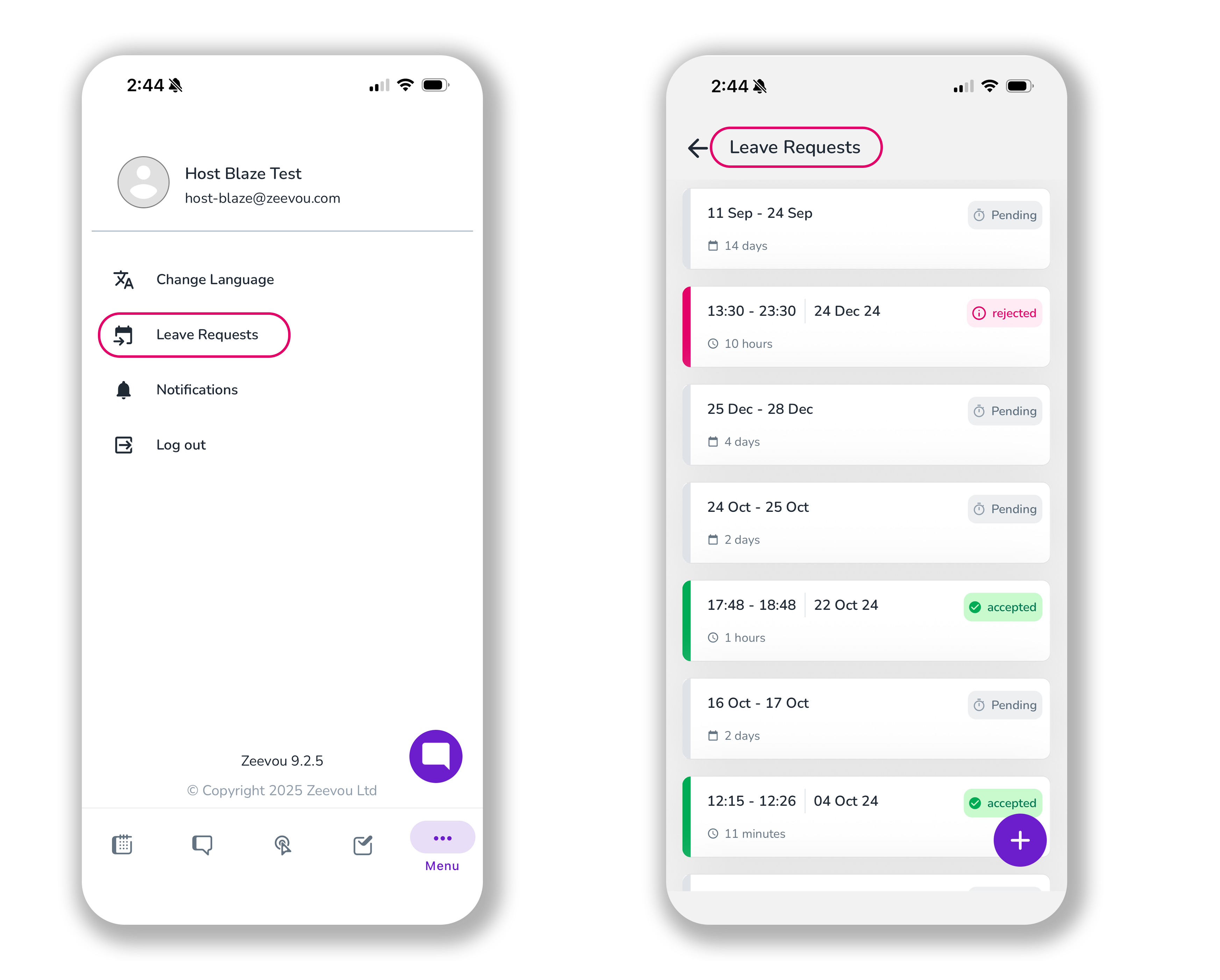 Note: The acceptance or rejection of Leave Request by the host will be shown in the Notifications.