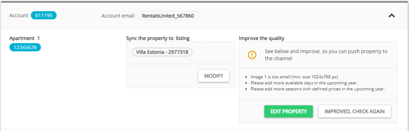 Come back to the Property List page and click the Improved, check again button.