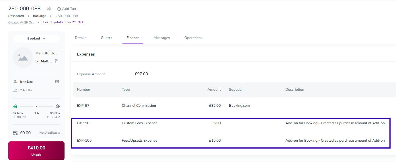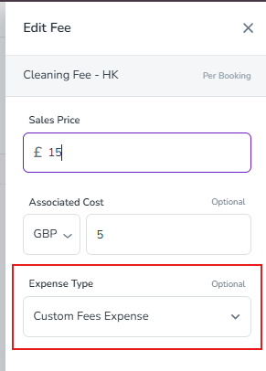 The Fees/Upsells Expense in Zeevou is a newly introduced expense type designed to better classify and track the purchase price of add-ons (upsells) such as cleaning fees, breakfast, or parking.