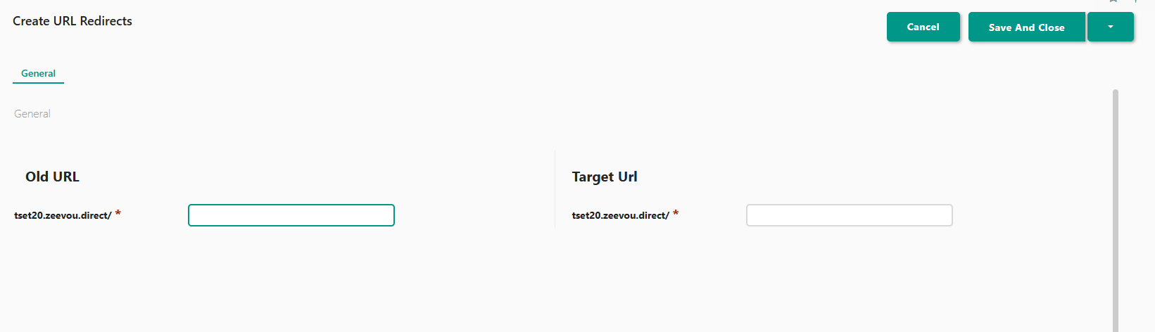 Fill in the Old URL (the URL that the page used to sit on) and the Target URL (the URL of the new page you want the user to be redirected to) and click on Save and Close.