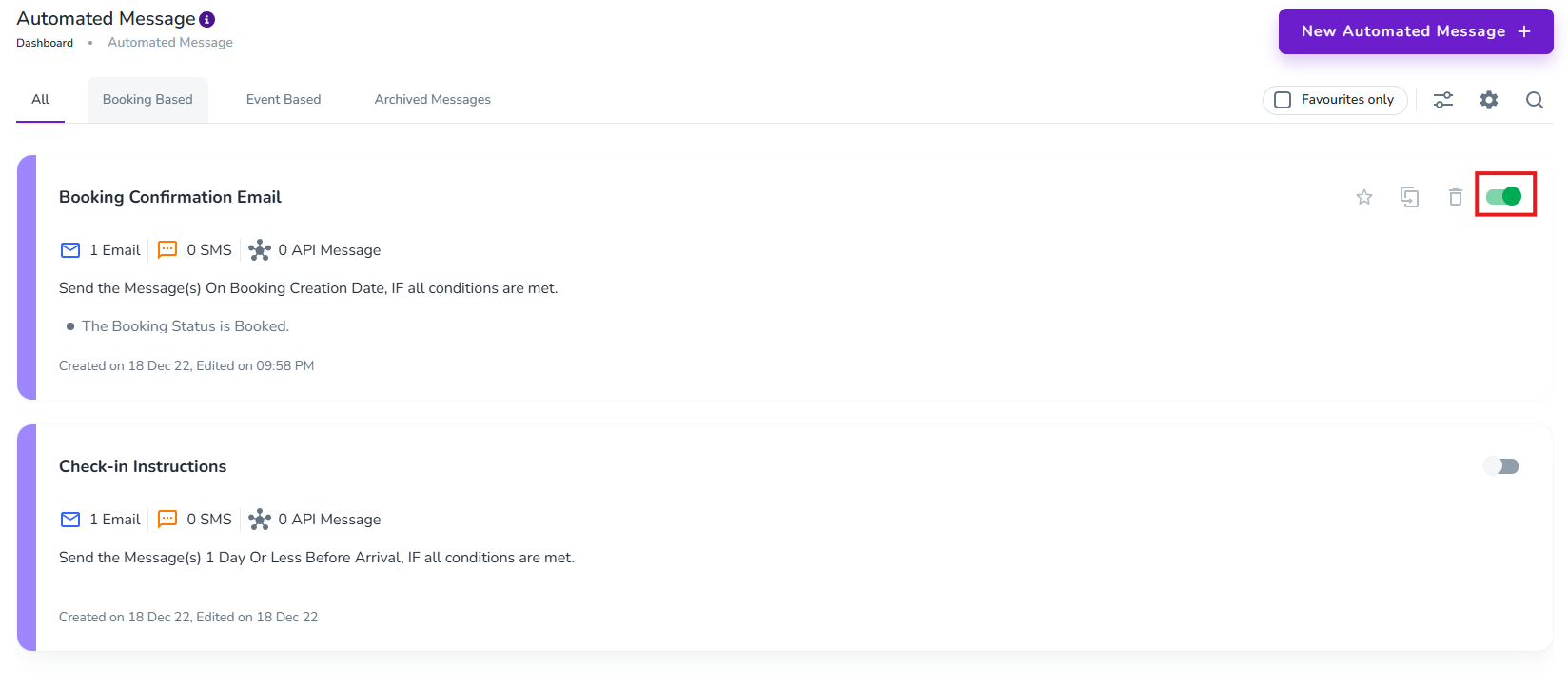 Note: Please note that activating the email at this stage, means that any channel bookings that may be imported when you connect to channels will also receive this email. You may wish to add a condition to the email to restrict it to only send to direct bookings for now, hold off with activating it until after you have connect to other channels like Airbnb & Booking.com, or temporarily turn it off while connecting and reactivate it again once done.