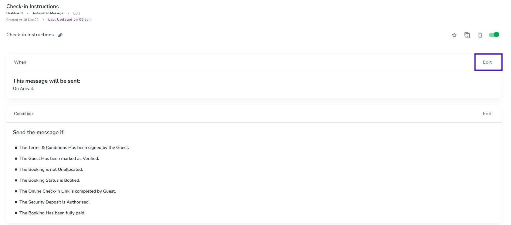 Event-Based (Green) Messages are triggered by specific events that occur, either related to the booking such as check-in/check-out, instructions or any other custom event that you define within the system.